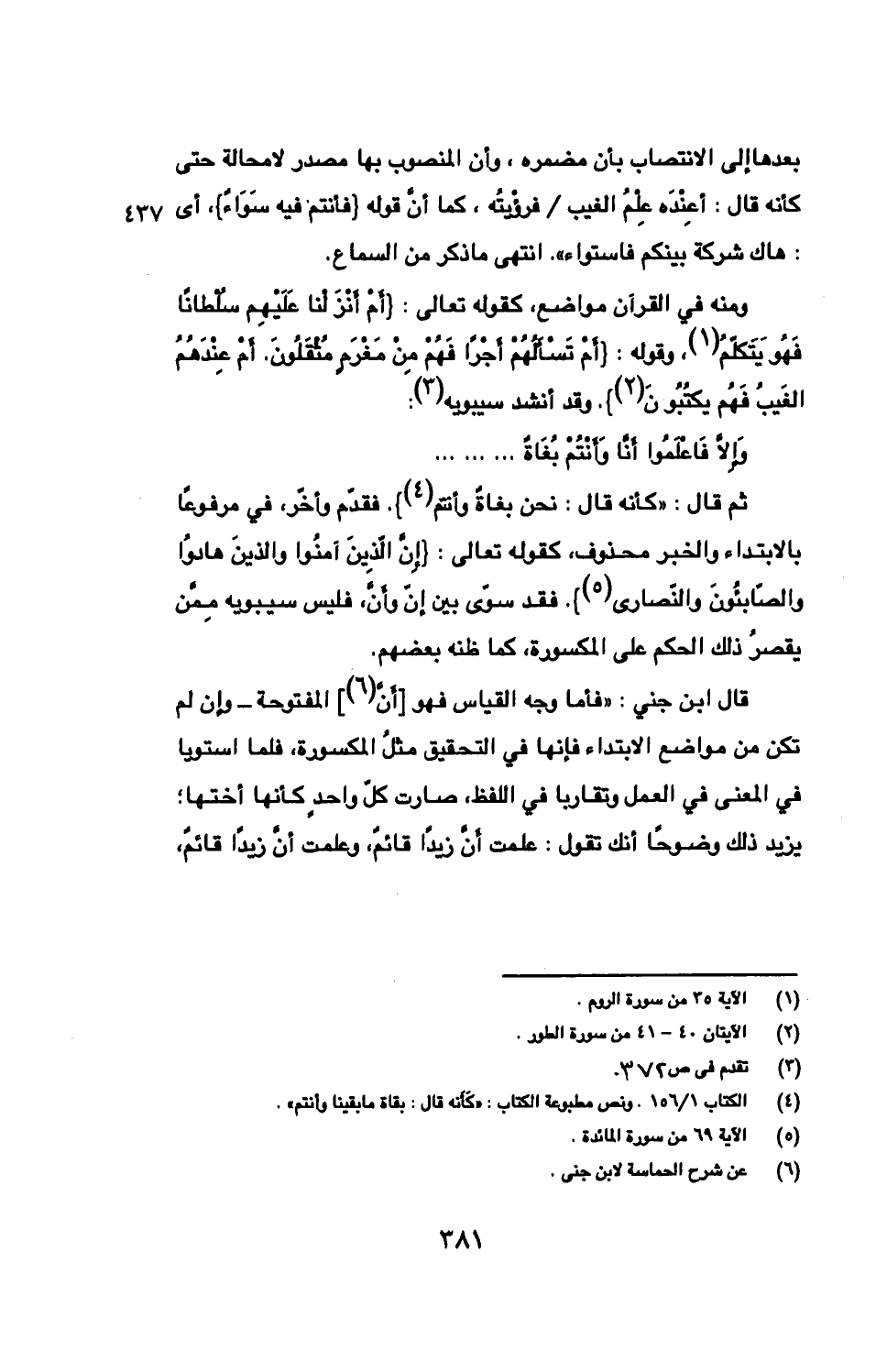 ثم قال: «كأنه قال: نحن بغاةٌ وأنتم». فقدّم وأخّر، في مرفوعًا بالابتداء والخبر محذوف، كقوله تعالى: {إِنّ الّذِينَ آمنُوا والذينَ هادُوا والصّابئُونَ والنّصارى}. فقد سوّى بين إنّ وأنّ، فليس سيبويه مِمّن يقصرُ ذلك الحكم على المكسورة، كما ظنه بعضهم.