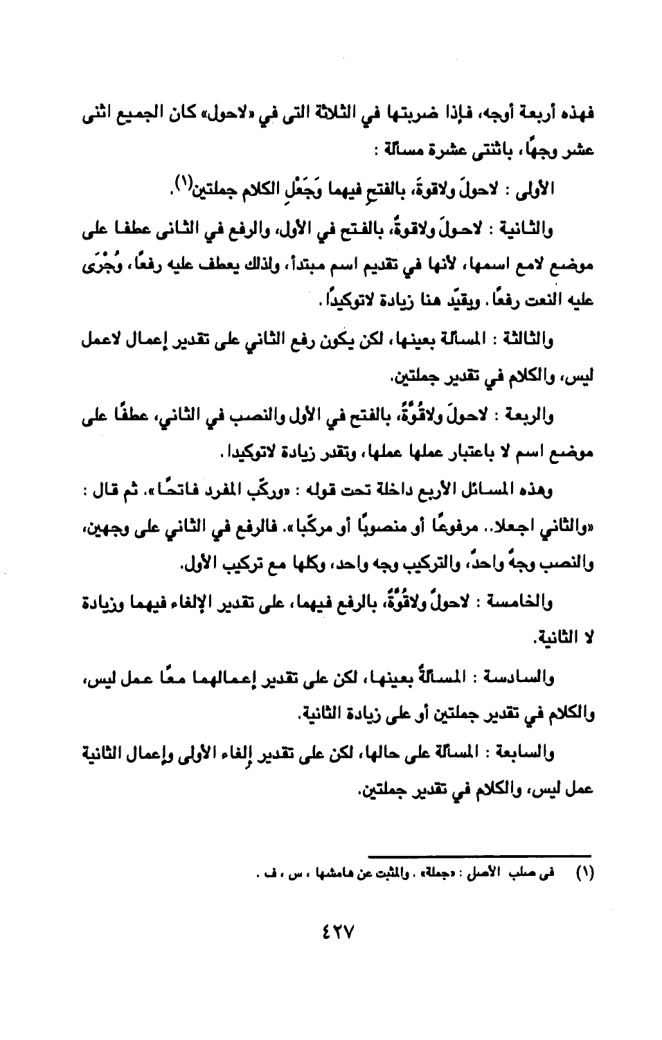 فهذه أربعة وجه، فإذا ضربتها في الثلاثة التى في «لا حول» كان الجميع اثنى عشر وجهًا، باثنتى عشرة مسألة: