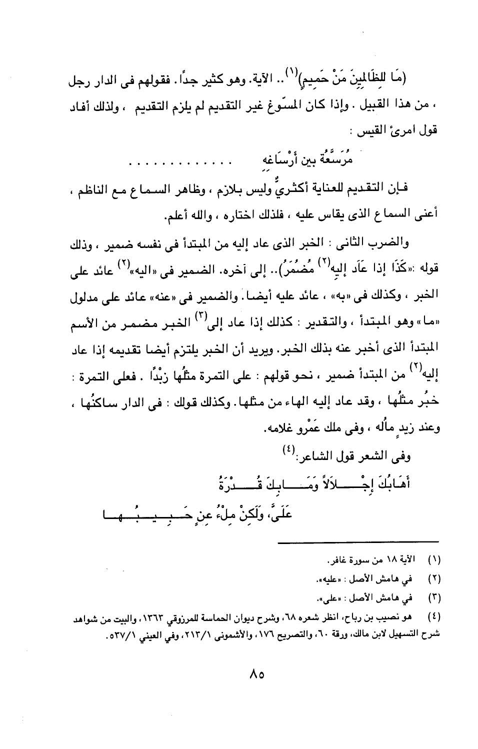{مَا لِلظَالِمِينَ منْ حَمِيمٍ} .. الآية. وهو كثير جدًا. فقولهم فى الدار رجل، من هذا القبيل. وإذا كان المسؤغ غير التقديم لم يلزم التقديم، ولذلك أفاد قول امرئ القيس: