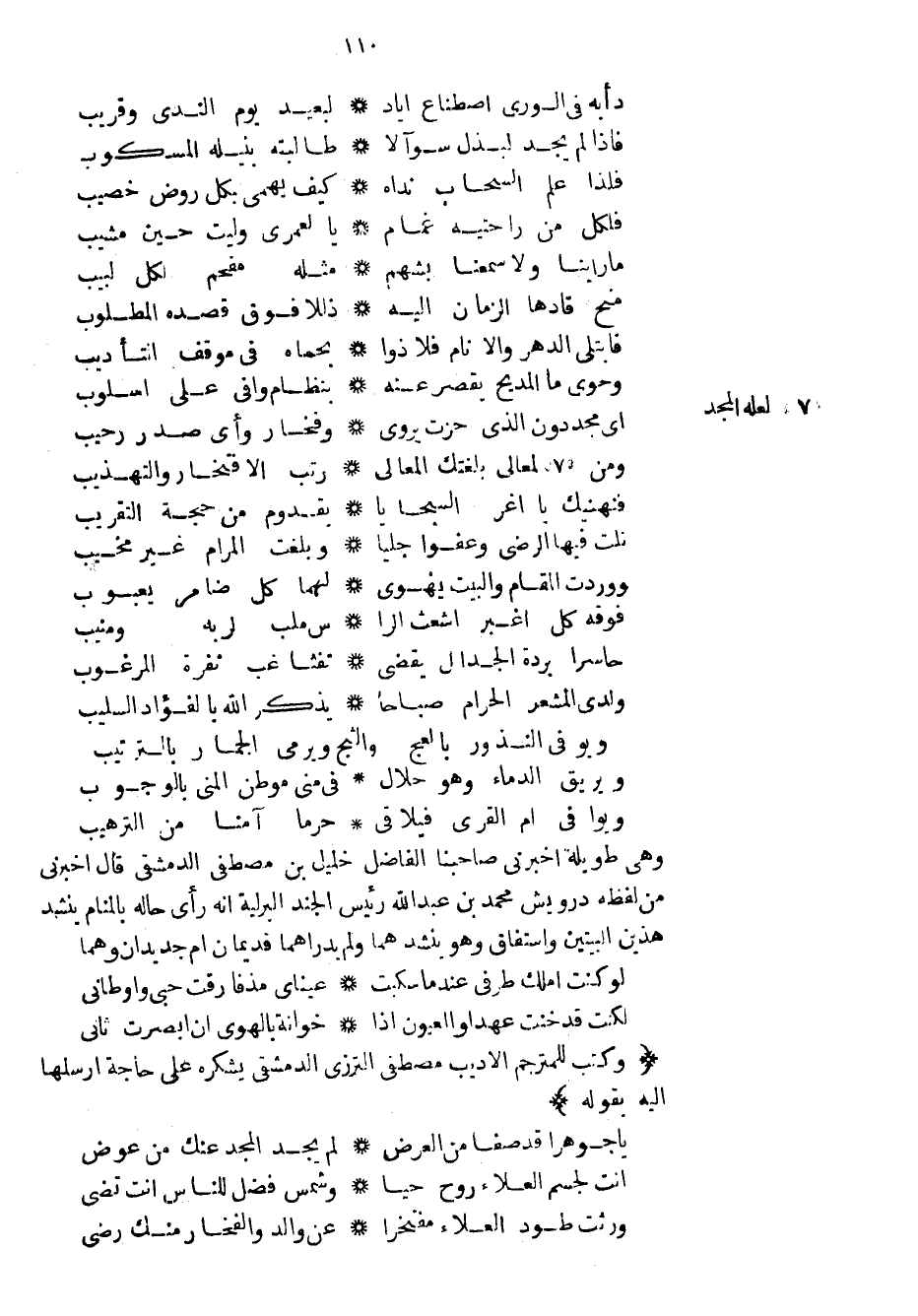 وكتب للمترجم الأديب مصطفى الترزي الدمشقي يشكره على حاجة أرسلها إليه بقوله