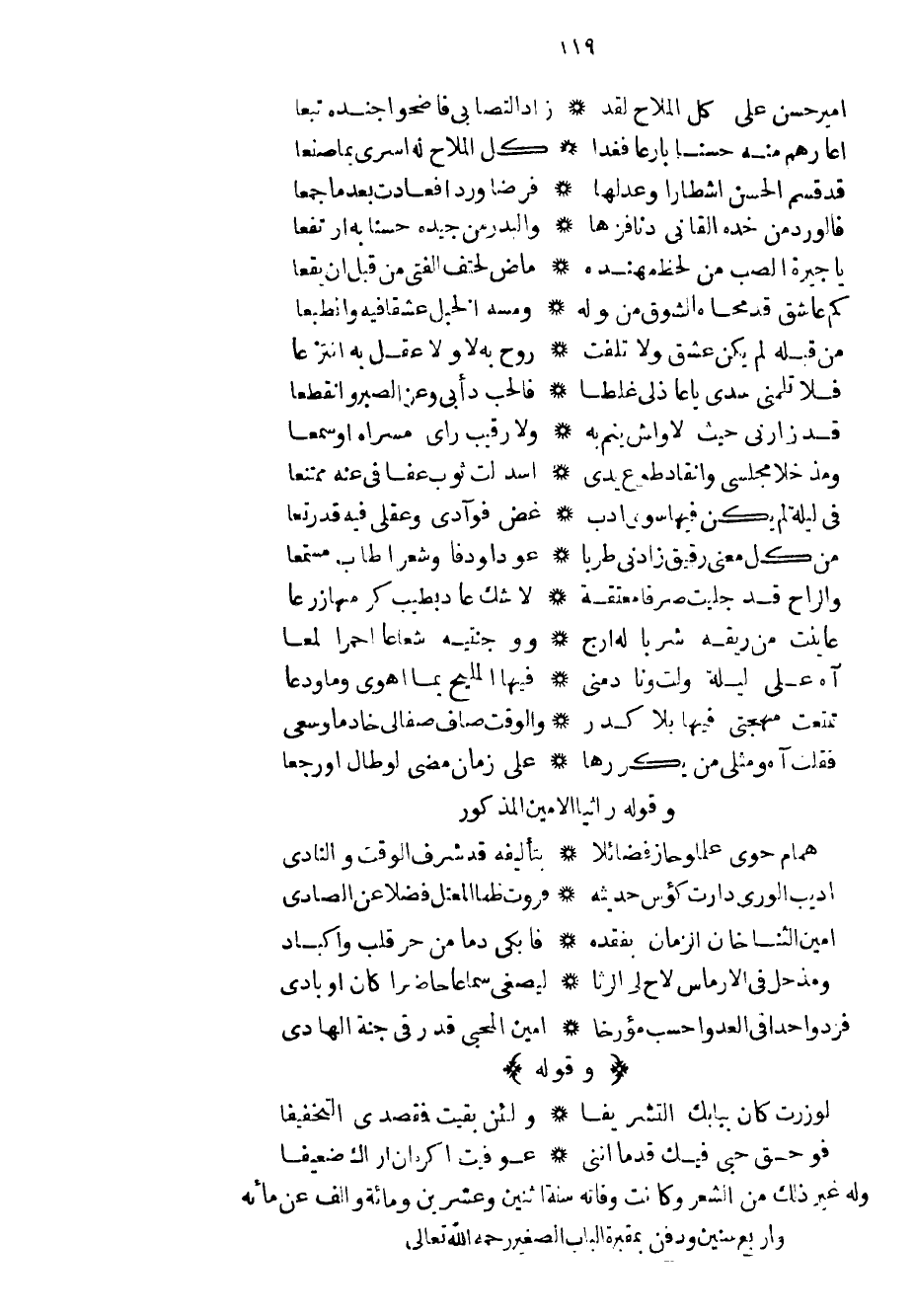 فرد واحداً في العدو أحسب مؤرخاً ... أمين المحبي قد رقى جنة الهادي