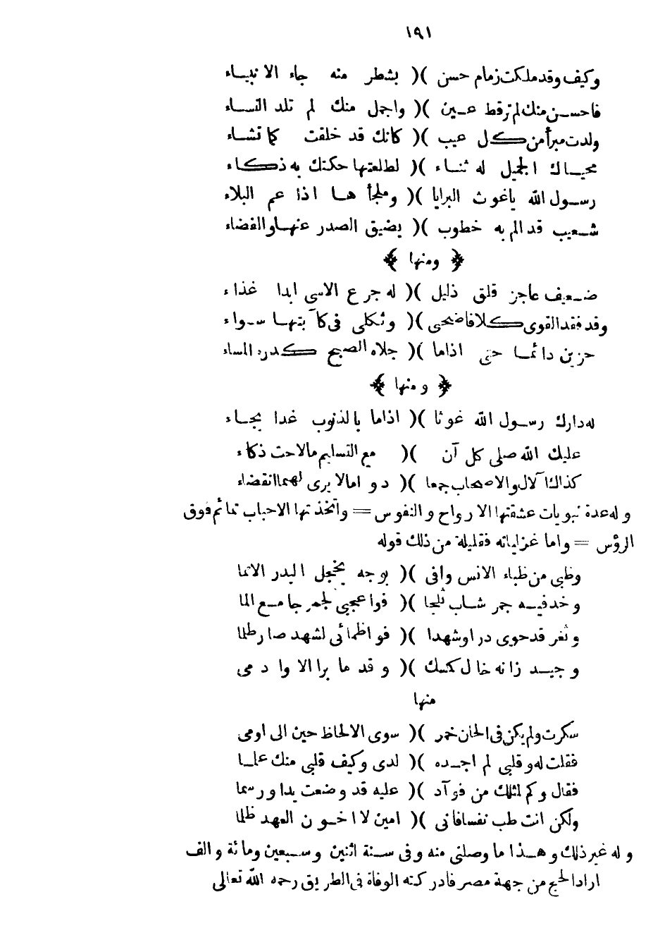 وله عدة نبويات عشقتها الأرواح والنفوس واتخذتها الأحباب تمائم فوق الرؤس وأما غزلياته فقليلة من ذلك قوله