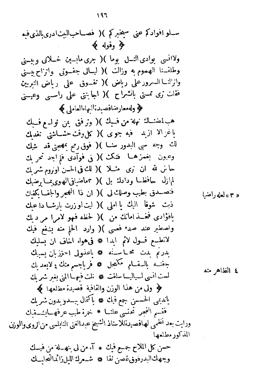 ورأيت بعد نظمي لها قصيدة للأستاذ الشيخ عبد الغني النابلسي من الروي والوزن المذكور مطلعها