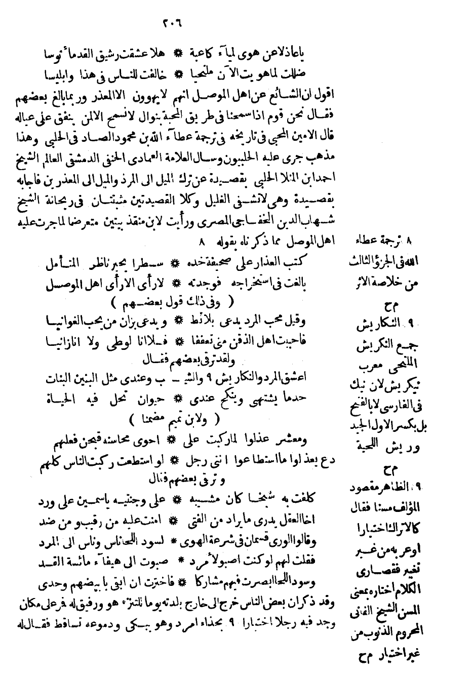 أقول إن الشائع عن أهل الموصل إنهم لا يهوون الا المعذر وربما بالغ بعضهم فقال نحن قول إذا سمحنا في طريق المحبة بنوال لا نسمح الا لمن ينفق على عياله قال الأمين المحبي في تاريخه في ترجمة عطاء الله بن محمود الصادقي الحلبي وهذا مذهب جرى عليه الحلبيون وسال العلامة العمادي الحنفي الدمشقي العالم الشيخ أحمد ابن المنلا الحلبي بقصيدة عن ترك الميل إلى المرد والميل إلى المعذرين فأجابه بقصيدة وهي لا تشفي الغليل وكلا القصيدتين مثبتتان في ريحانة الشيخ شهاب الدين الخفاجي المصري ورأيت لأبن منقذ بيتين متعرضاً لما جرت عليه أهل الموصل مما ذكرناه بقوله