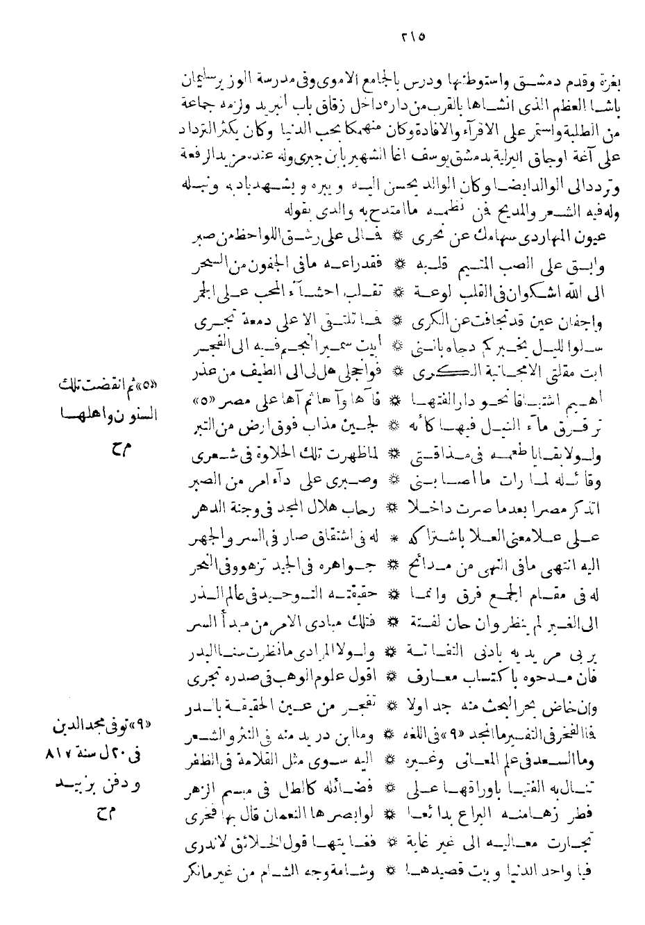 فيا واحد الدنيا وبيت قصيدها ... وشامة وجه الشام من غير ما نكر