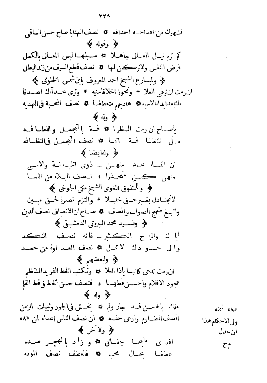 تشهيك من أقداحه أحداقه ... نصف الهنا يا صاح حسن الساقي
