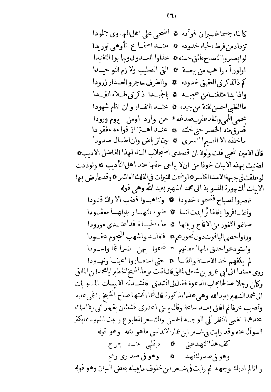 قال الأمين المحبي قلت ولولا إن قصدي استجلاب الثناء لهذا الفاضل الأديب لضنيت بهذه الأبيات خوفاً من أن لا يراعي حقها عند أهل التأديب ولوددت لو علقت في جبهة الاسد الكاسر أو ضمت للنيرات في الفلك العاشر وقد عارض بها الأبيات المشهورة المنسوبة إلى محمد الشهير بعبد الله وهي قوله