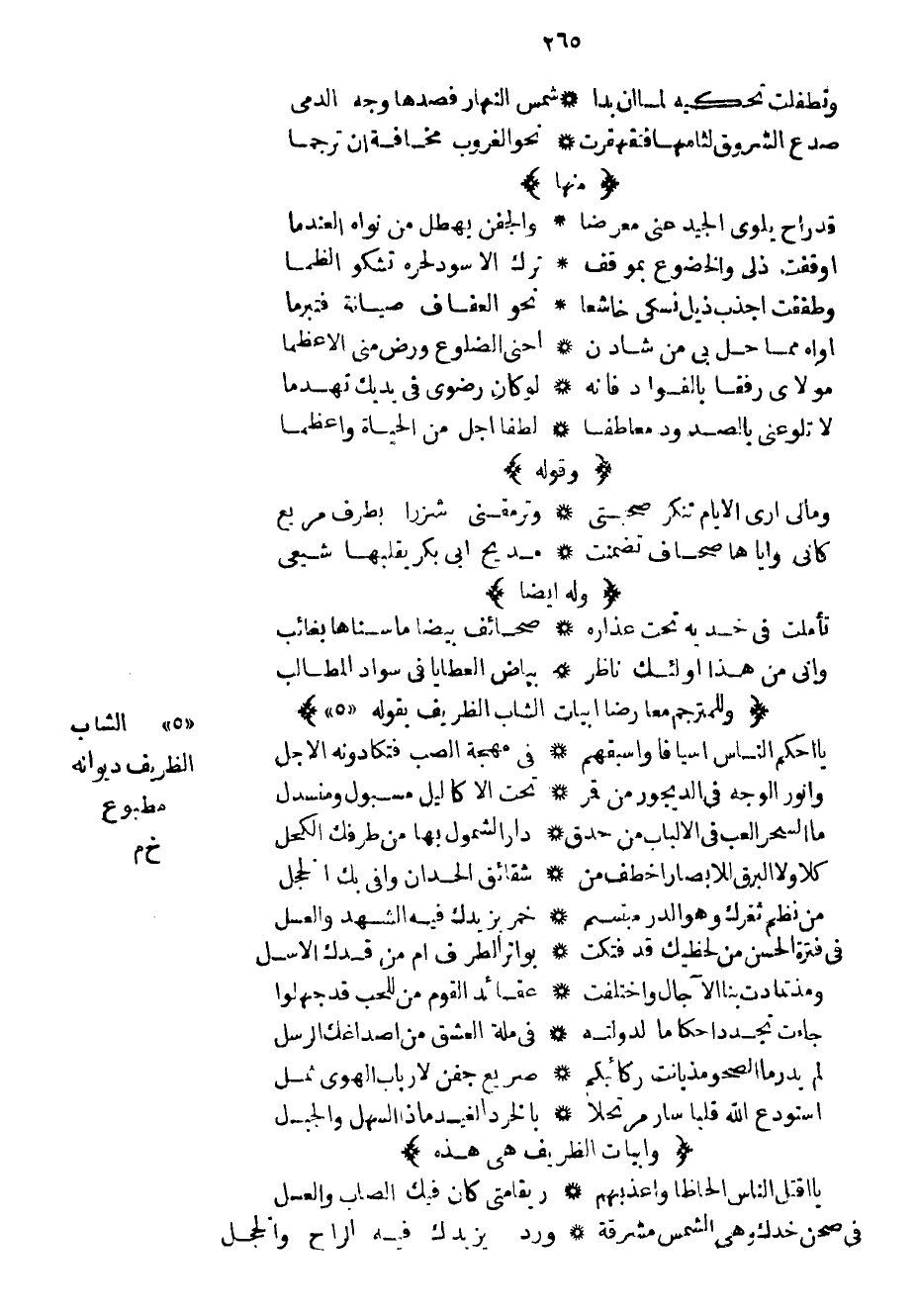 وللمترجم معا رضا أبيات الشاب الظريف بقوله