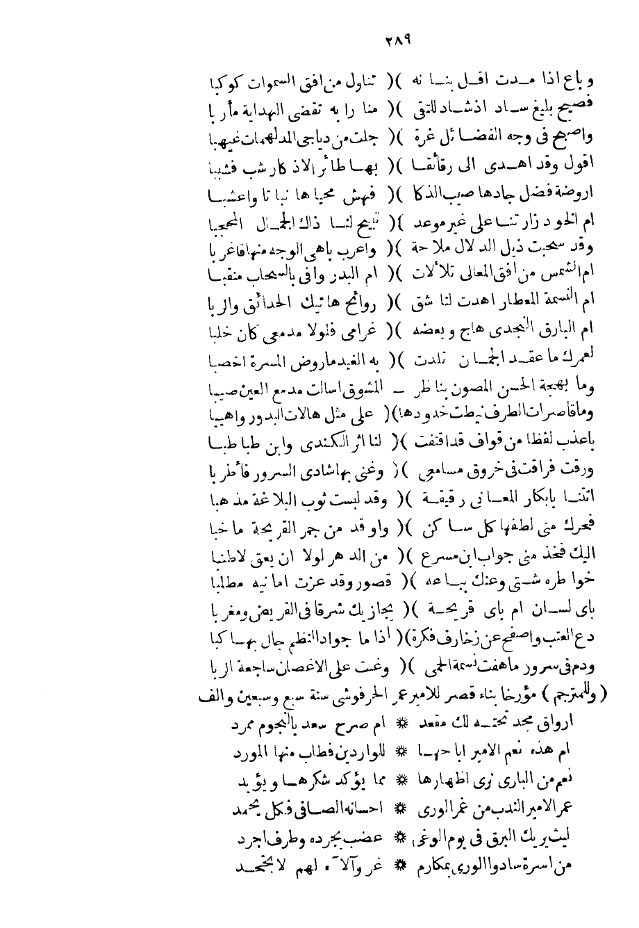 وللمترجم مؤرخاً بناء قصر للأمير عمر الحرفوشي سنة سبع وسبعين وألف