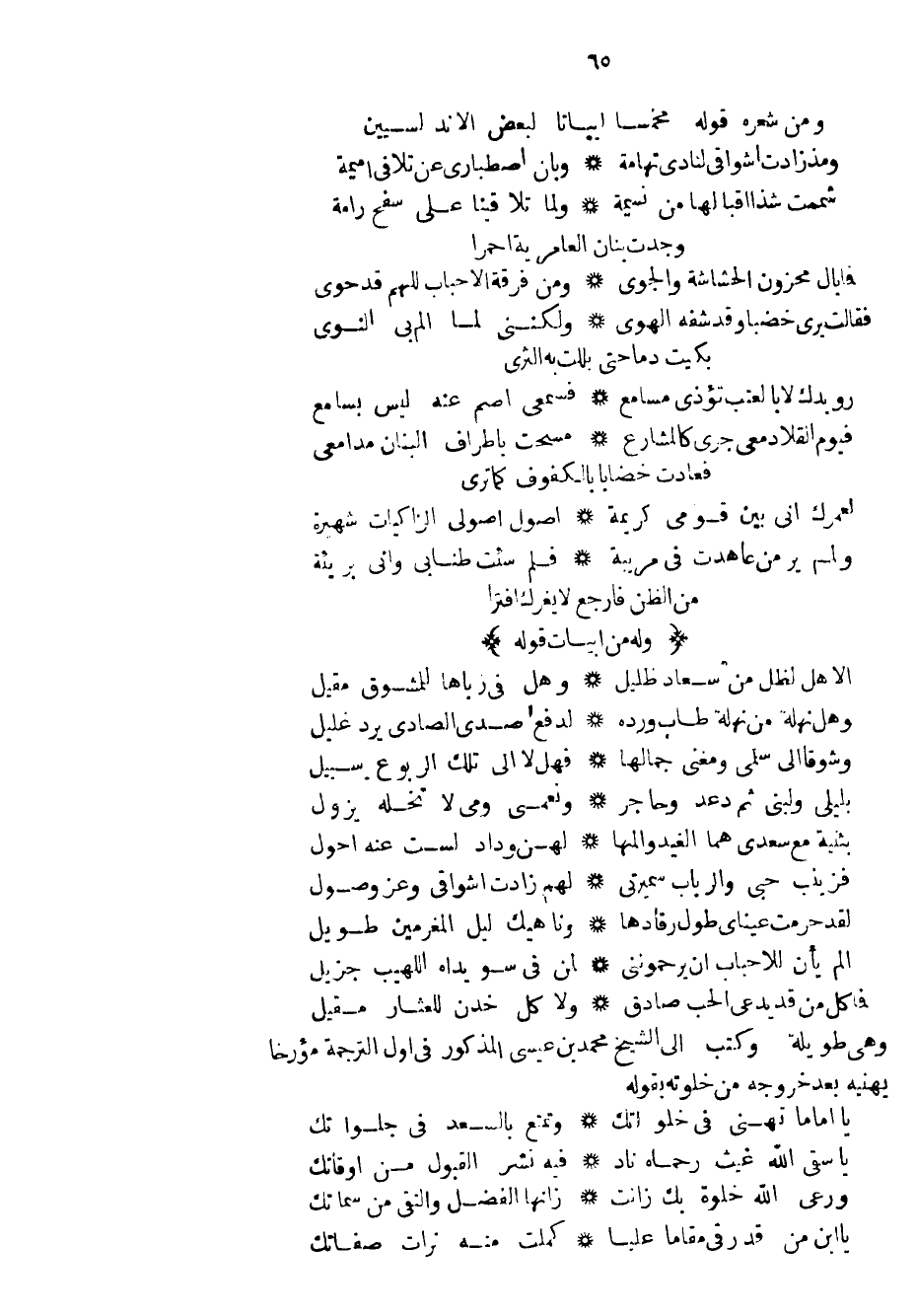 وهي طويلة وكتب إلى الشيخ محمد بن عيسى المذكور في أول الترجمة مؤرخاً يهنيه بعد خروجه من خلوته بقوله