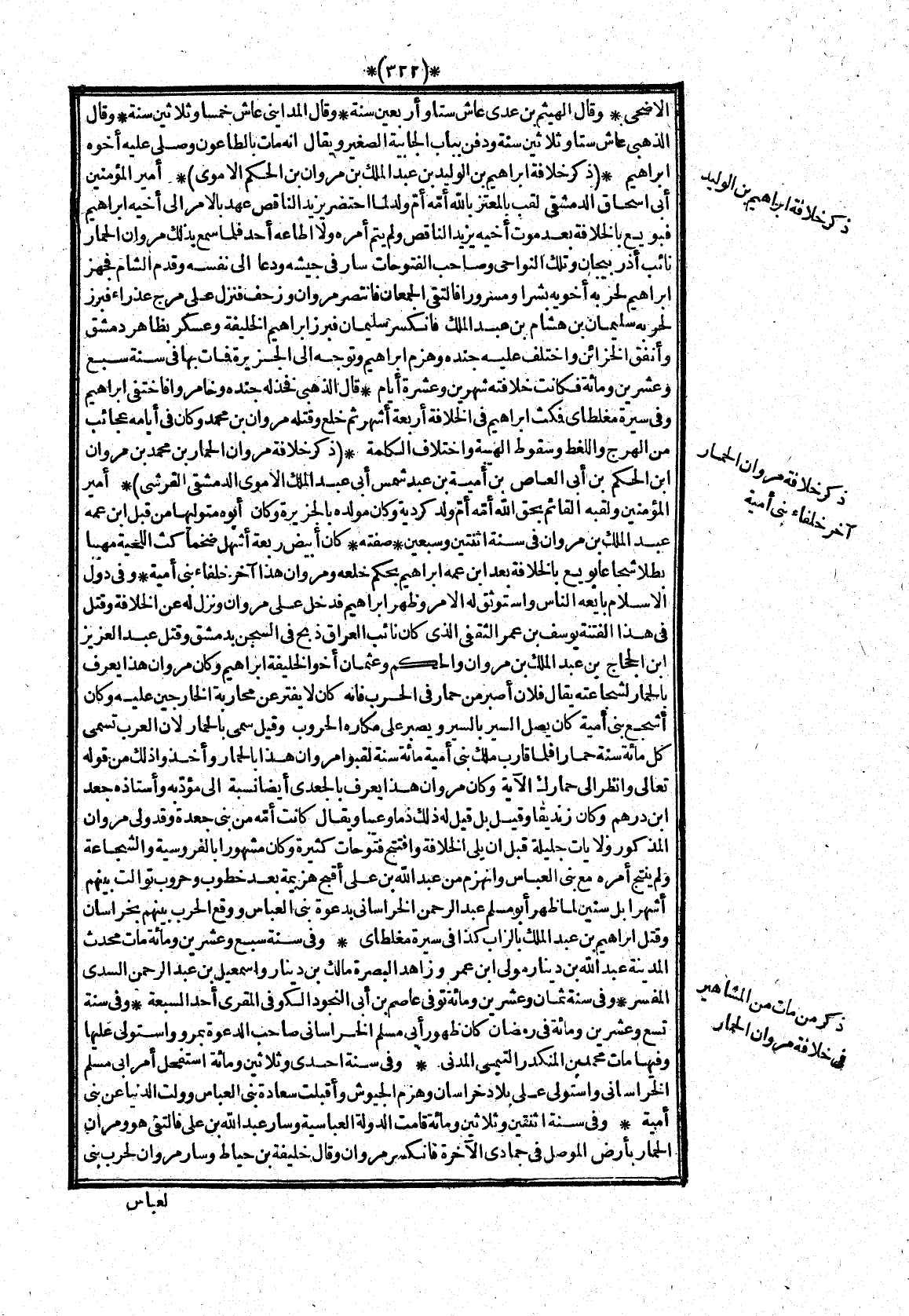 (ذكر خلافة مروان الحمار بن محمد بن مروان ابن الحكم بن أبى العاص بن أمية بن عبد شمس أبى عبد الملك الاموى الدمشقى القرشى)