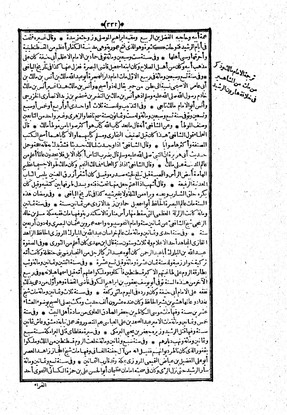 ترجمة الامام مالك وذكر من مات من المشاهير فى خلافة هارون الرشيد