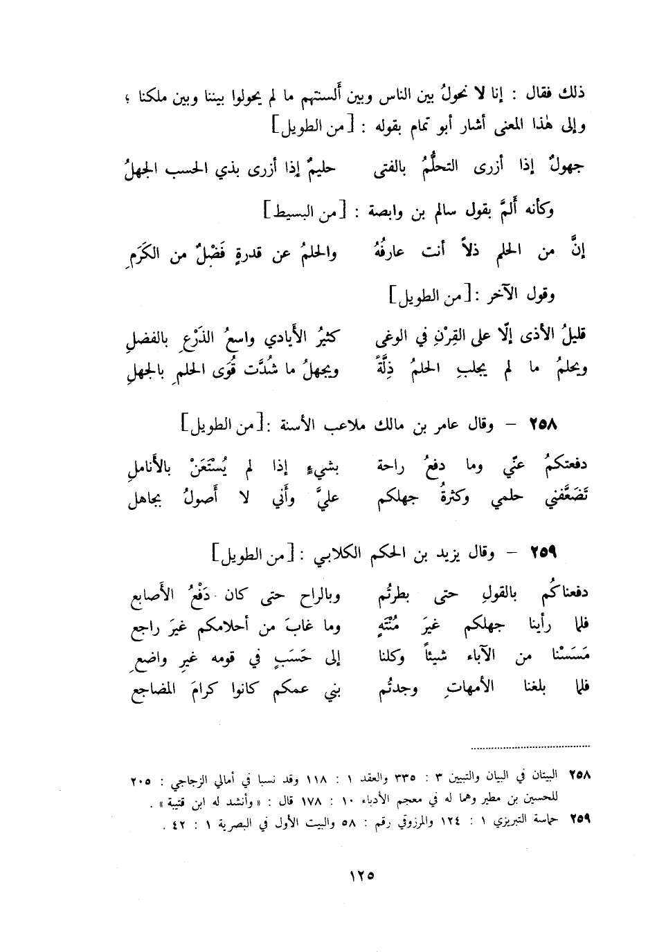 إنّ من الحلم ذلا أنت عارفه ... والحلم عن قدرة فضل من الكرم