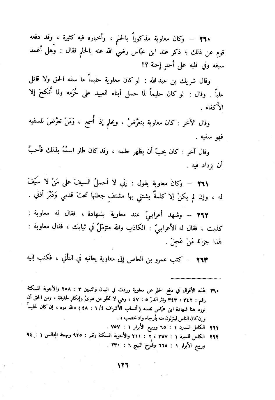 «261» - وكان معاوية يقول: إني لا أحمل السيف على من لا سيف له، وإن لم يكن إلا كلمة يشتفي بها مشتف جعلتها تحت قدمي ودبر أذني.