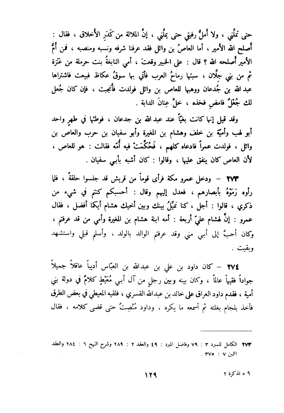 274- كان داود بن علي بن عبد الله بن العبّاس أديبا عاقلا جميلا جوادا فقيها عالما، وكان بينه وبين رجل من آل أبي معيط كلام في دولة بني أمية، فقدم داود العراق على خالد بن عبد الله القسري، فلقيه المعيطي في بعض الطرق فأخذ بلجام بغلته ثم أسمعه ما يكره، وداود منصت حتى قضى كلامه، فقال