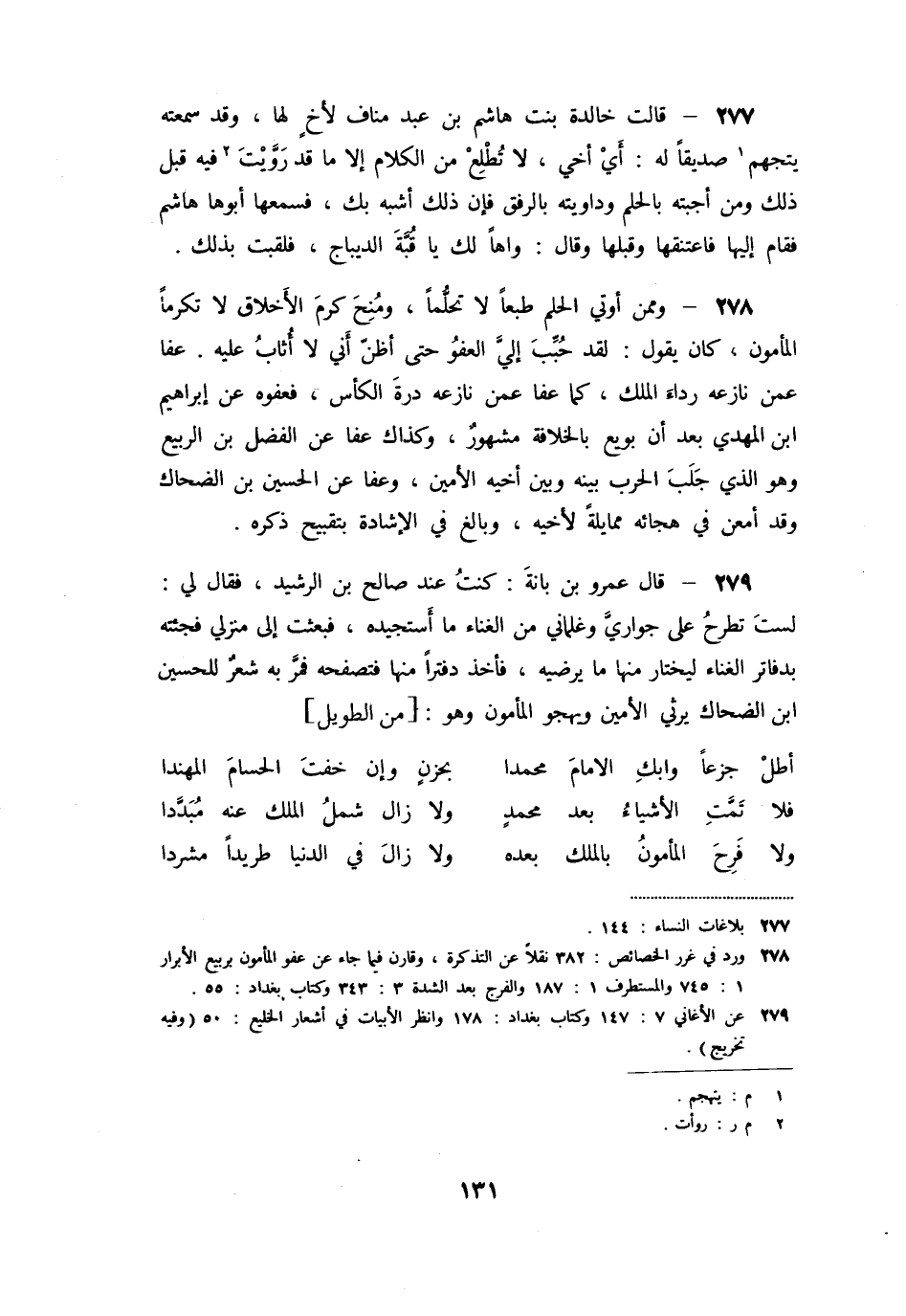 «279» - قال عمرو بن بانة: كنت عند صالح بن الرشيد، فقال لي: