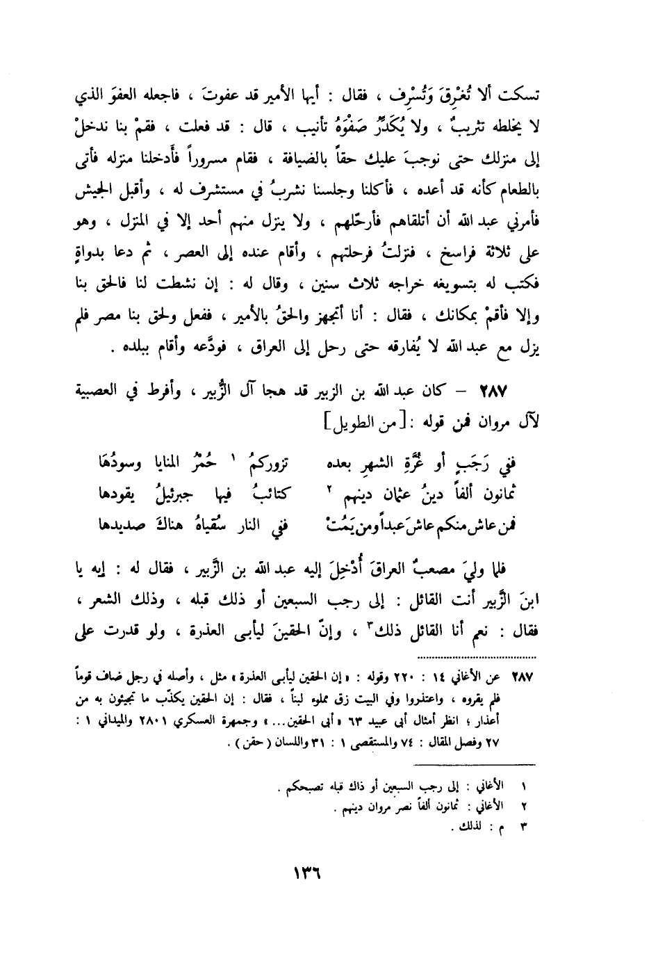 «287» - كان عبد الله بن الزبير قد هجا آل الزّبير، وأفرط في العصبية لآل مروان فمن قوله: [من الطويل]