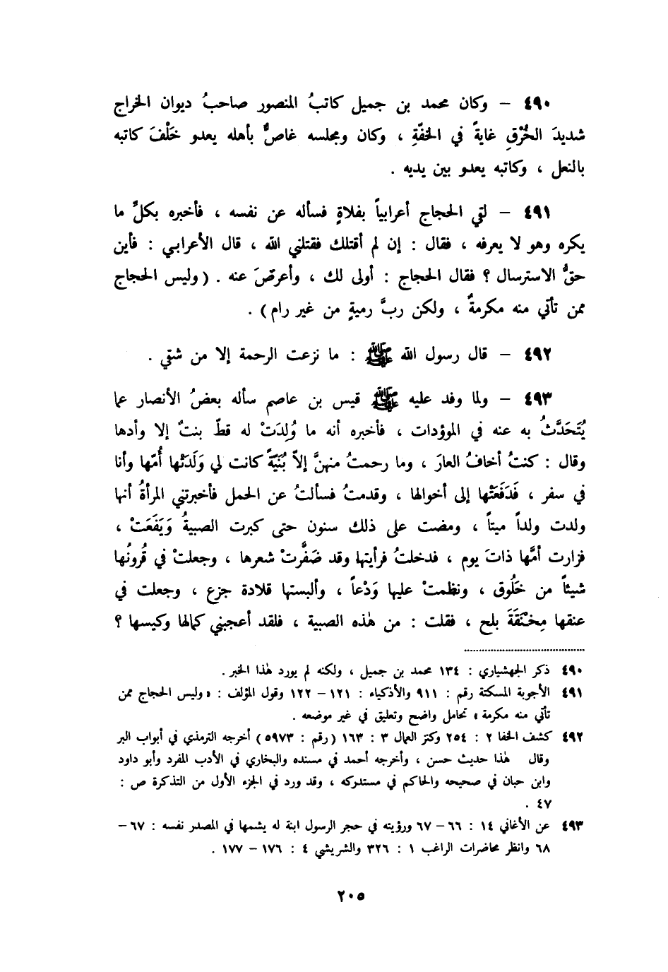 «490» - وكان محمد بن جميل كاتب المنصور صاحب ديوان الخراج شديد الخرق غاية في الخفّة، وكان ومجلسه غاصّ بأهله يعدو خلف كاتبه بالنعل، وكاتبه يعدو بين يديه.
