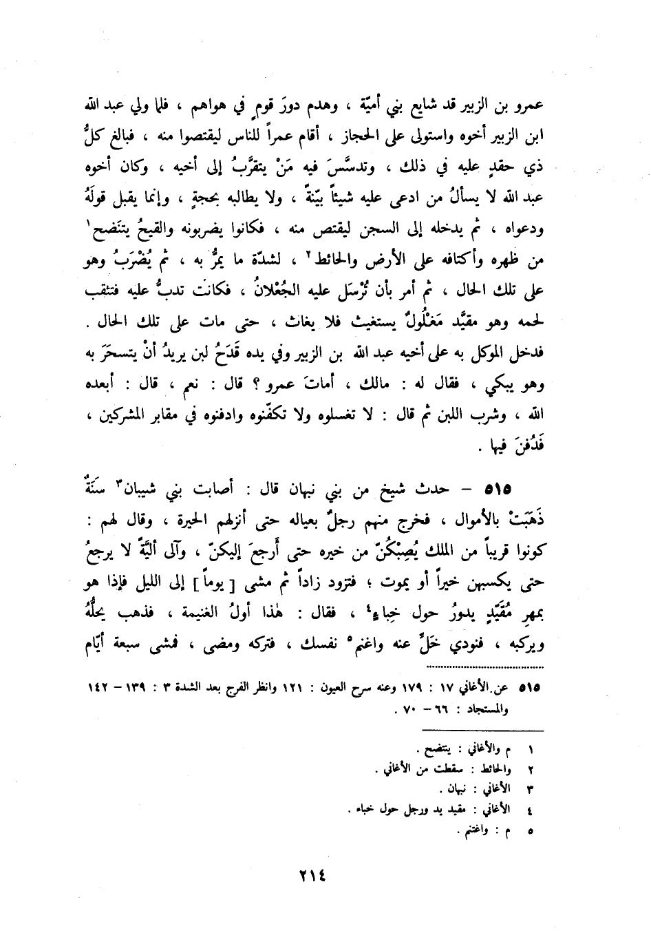 «515» - حدث شيخ من بني نبهان قال: أصابت بني شيبان [3] سنة ذهبت بالأموال، فخرج منهم رجل بعياله حتى أنزلهم الحيرة، وقال لهم: