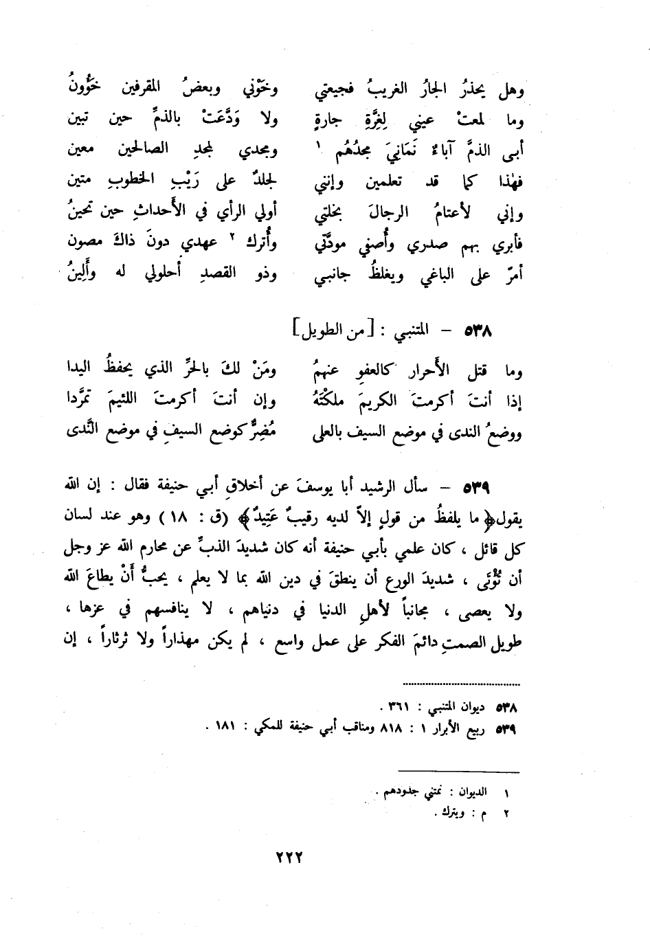 «539» - سأل الرشيد أبا يوسف عن أخلاق أبي حنيفة فقال: إن الله يقول ما يَلْفِظُ مِنْ قَوْلٍ إِلَّا لَدَيْهِ رَقِيبٌ عَتِيدٌ