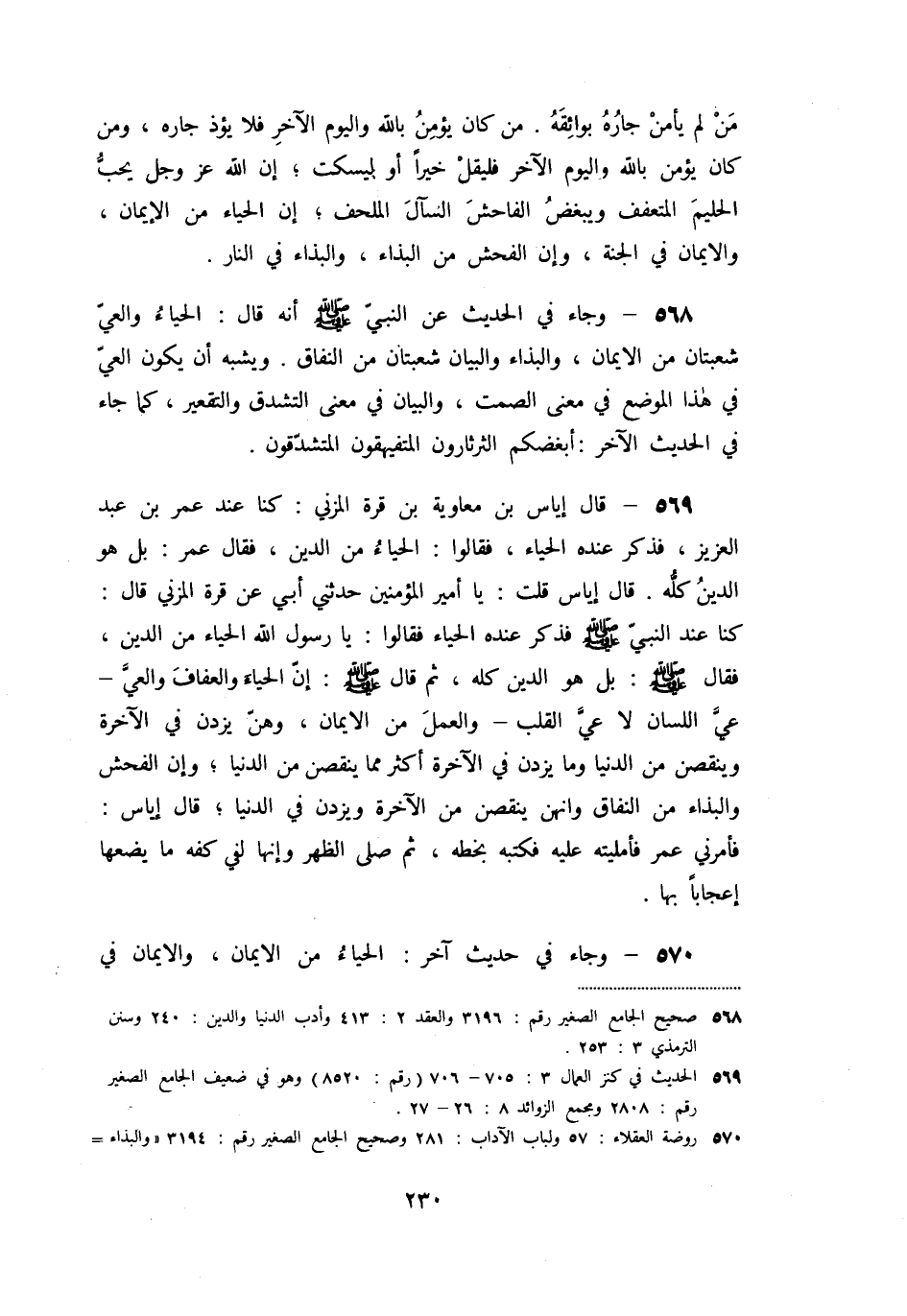 «570» - وجاء في حديث آخر: الحياء من الايمان، والايمان في