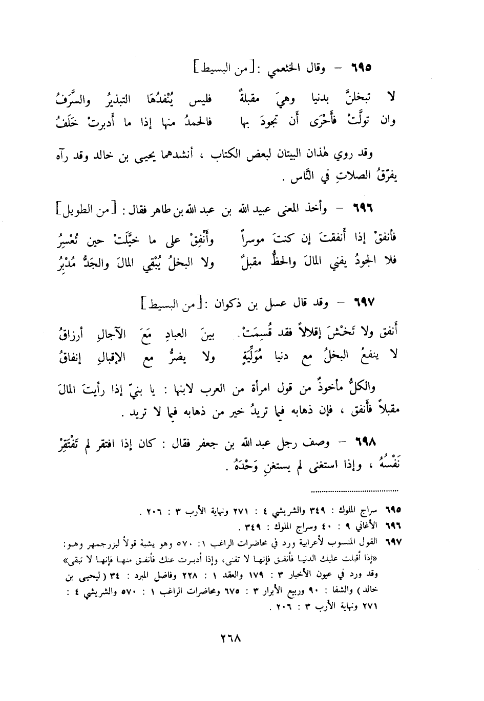 والكلّ مأخوذ من قول امرأة من العرب لابنها: يا بنيّ إذا رأيت المال مقبلا فأنفق، فإن ذهابه فيما تريد خير من ذهابه فيما لا تريد.