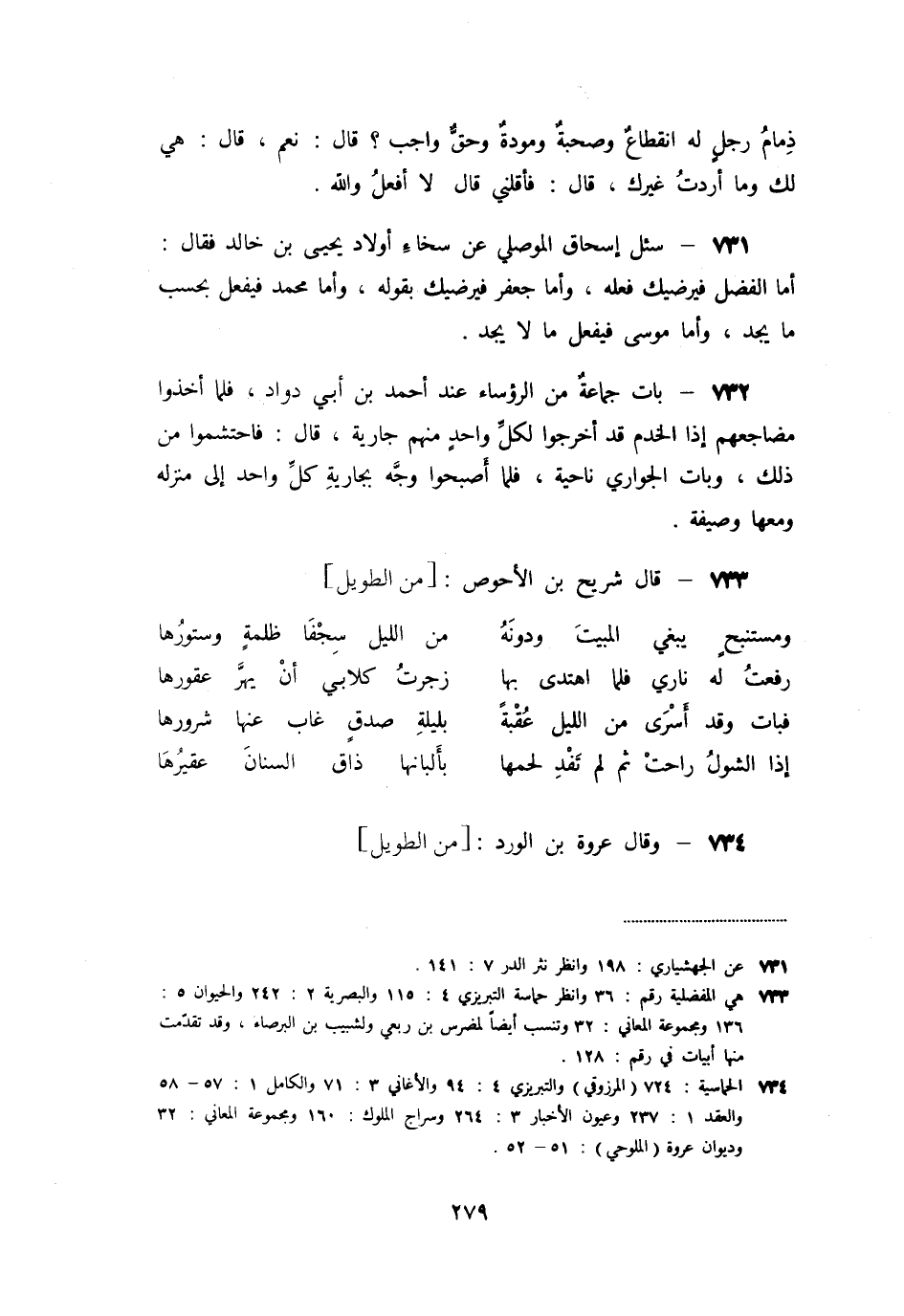 «731» - سئل إسحاق الموصلي عن سخاء أولاد يحيى بن خالد فقال: