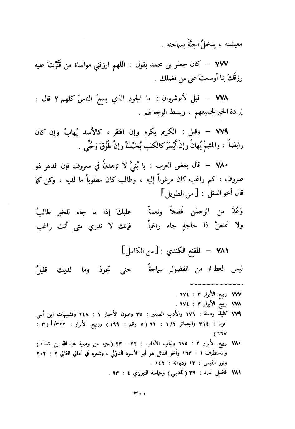 «777» - كان جعفر بن محمد يقول: اللهم ارزقني مواساة من قتّرت عليه رزقك بما أوسعت علي من فضلك.