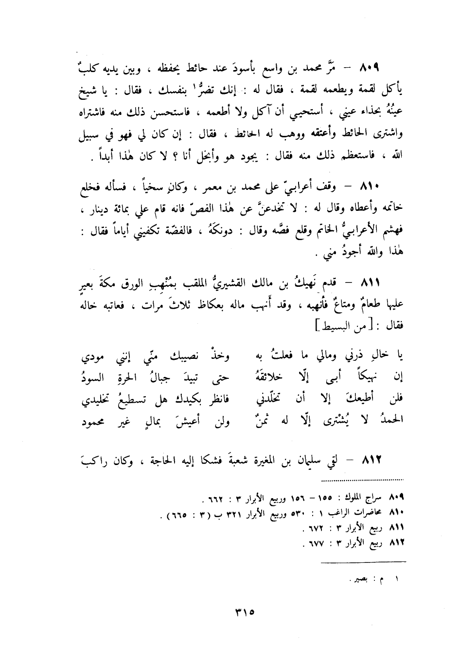 «812» - لقي سليمان بن المغيرة شعبة فشكا إليه الحاجة، وكان راكب