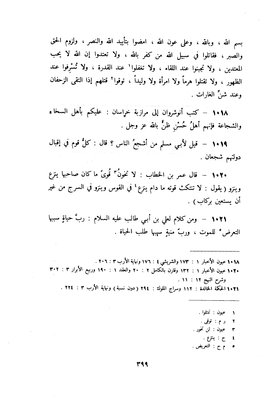 «1018» - كتب أنوشروان إلى مرازبة خراسان: عليكم بأهل السخاء والشجاعة فإنهم أهل حسن ظنّ بالله عز وجل.