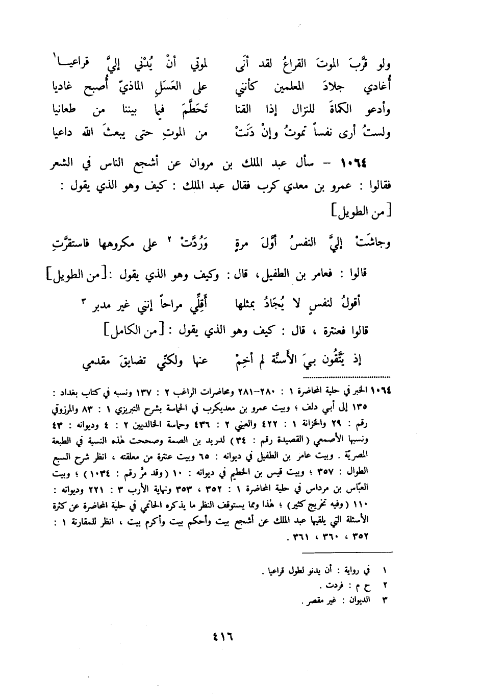 «1064» - سأل عبد الملك بن مروان عن أشجع الناس في الشعر فقالوا: عمرو بن معدي كرب فقال عبد الملك: كيف وهو الذي يقول: