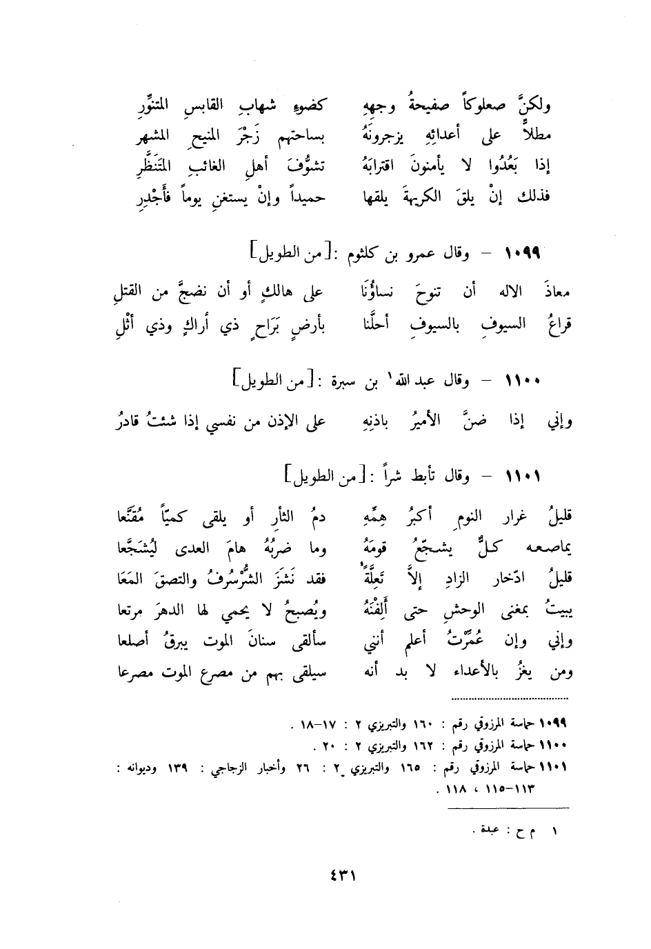 «1100» - وقال عبد الله [1] بن سبرة: [من الطويل]