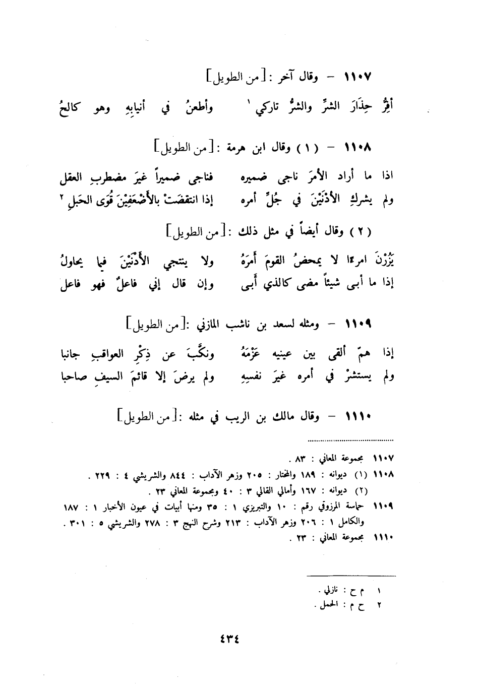 «1109» - ومثله لسعد بن ناشب المازني: [من الطويل]