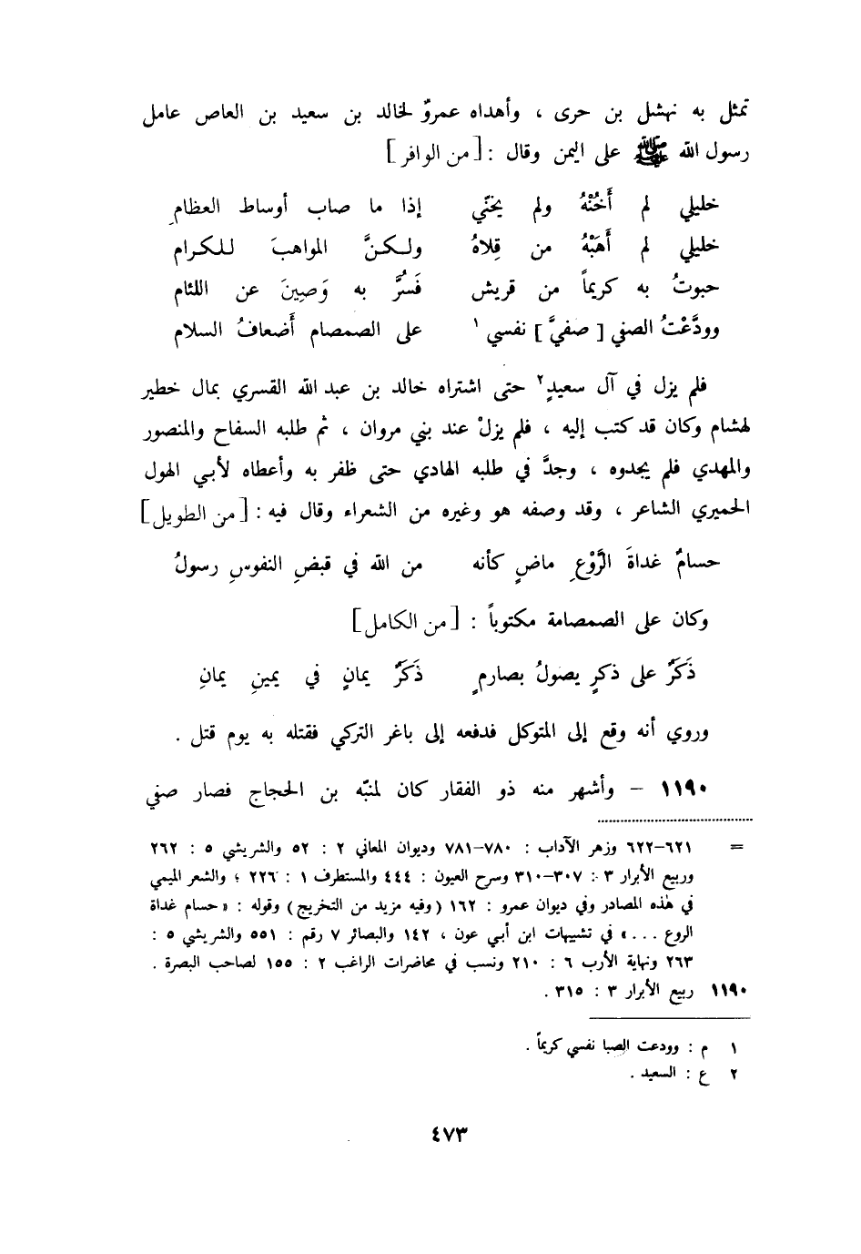وودّعت الصفي [صفيّ] نفسي [1] ... على الصمصام أضعاف السلام