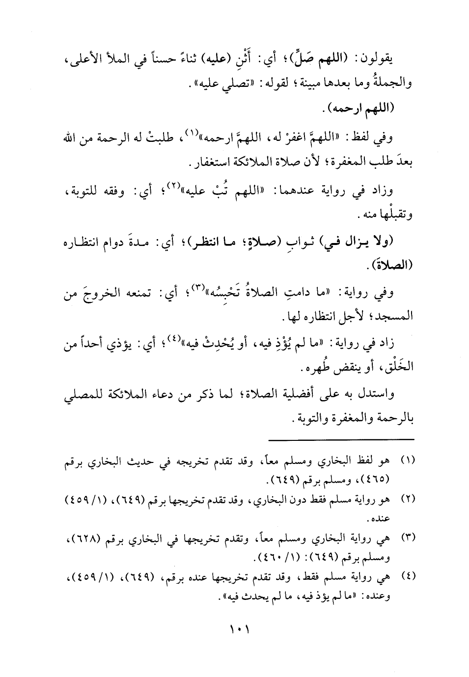 (٣) هي رواية البخاري ومسلم معًا، وتقدم تخريجها في البخاري برقم (٦٢٨)، ومسلم برقم (٦٤٩): (١/ ٤٦٠).