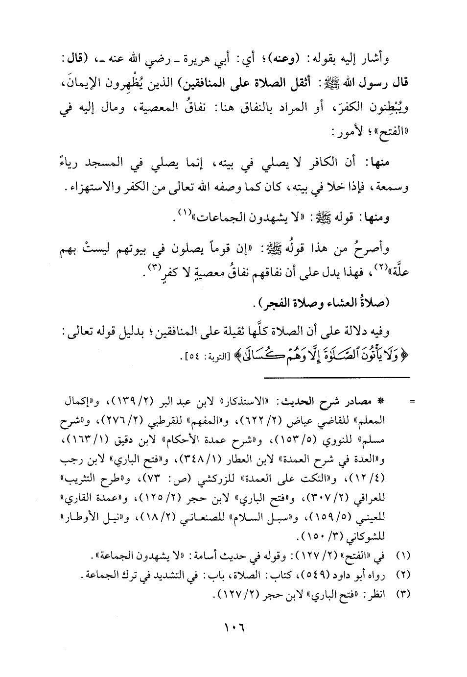 (١) في "الفتح" (٢/ ١٢٧): وقوله في حديث أسامة: "لا يشهدون الجماعة".