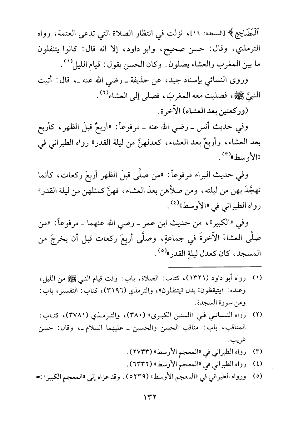 (١) رواه أبو داود (١٣٢١)، كتاب: الصلاة، باب: وقت قيام النبي - صلى الله عليه وسلم - من الليل، وعنده: "يتيقظون" بدل "يتنفلون"، والترمذي (٣١٩٦)، كتاب: التفسير، باب: ومن سورة السجدة.