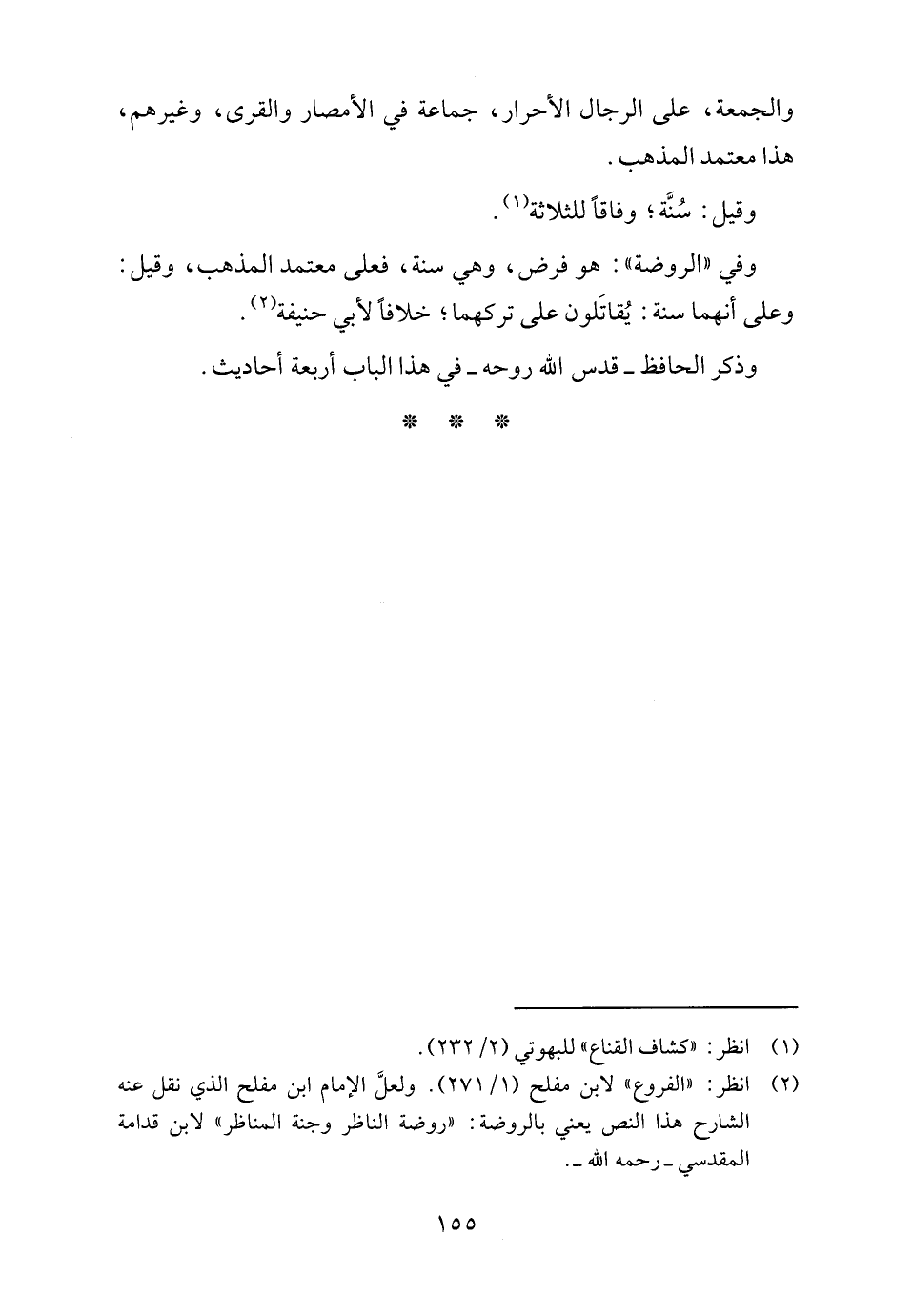 (٢) انظر: "الفروع" لابن مفلح (١/ ٢٧١). ولعلَّ الإمام ابن مفلح الذي نقل عنه الشارح هذا النص يعني بالروضة: "روضة الناظر وجنة المناظر" لابن قدامة المقدسي - رحمه الله -.