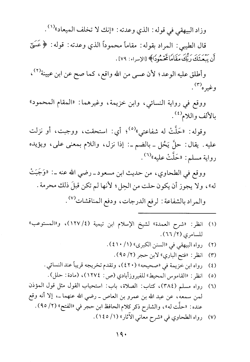 (٦) رواه مسلم (٣٨٤)، كتاب: الصلاة، باب: استحباب القول مثل قول المؤذن لمن سمعه، عن عبد الله بن عمرو بن العاص - رضي الله عنهما -، إلا أنه وقع عنده: "حلَّت له"، والشارح ذكر كلام الحافظ ابن حجر في "الفتح" (٢/ ٩٥).