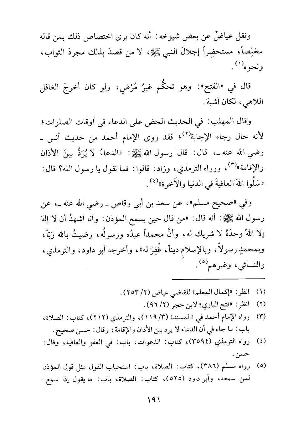 ونقل عياضٌ عن بعض شيوخه: أنه كان يرى اختصاص ذلك بمن قاله مخلِصًا، مستحضِرًا إجلالَ النبي - صلى الله عليه وسلم -، لا من قصدَ بذلك مجردَ الثواب، ونحوه (١).