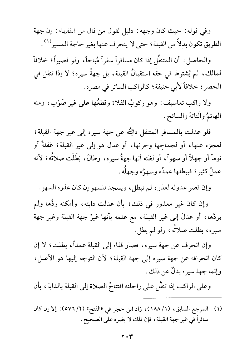 (١) المرجع السابق، (١/ ١٨٨)، زاد ابن حجر في "الفتح" (٢/ ٥٧٦): إلا إن كان سائرًا في غير جهة القبلة، فإن ذلك لا يضره على الصحيح.