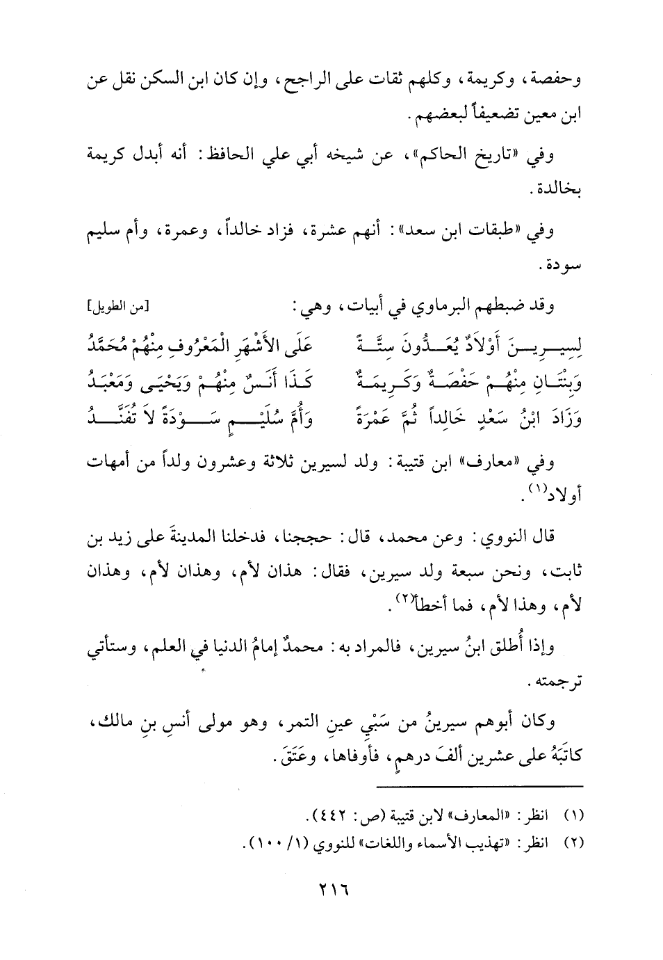 وَبِنْتَانِ مِنْهُمْ حَفْصَةٌ وَكَرِيمَةٌ ... كَذَا أَنَسٌ مِنْهُمْ وَيَحْيَى وَمَعْبَدُ