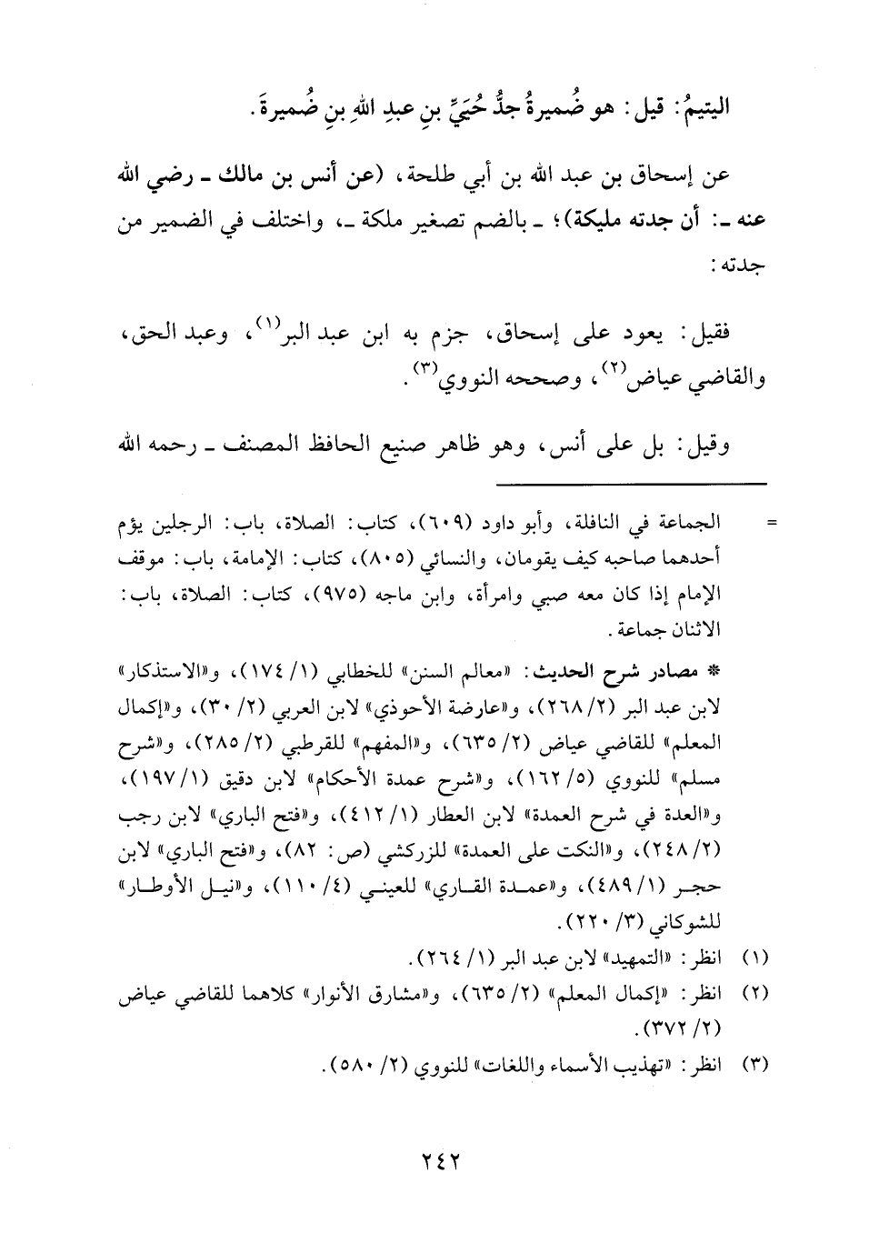 فقيل: يعود على إسحاق، جزم به ابن عبد البر (١) وعبد الحق، والقاضي عياض (٢)، وصححه النووي (٣).