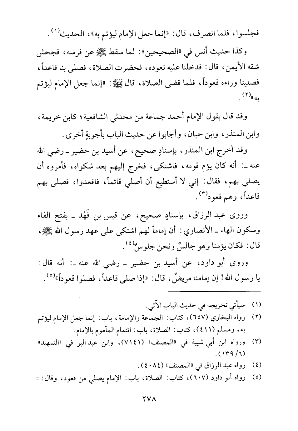 وروى أبو داود، عن أسيد بن حضير - رضي الله عنه -: أنه قال: يا رسول الله! إن إمامنا مريضٌ، قال: "إذا صلى قاعداً، فصلوا قعوداً" (٥).