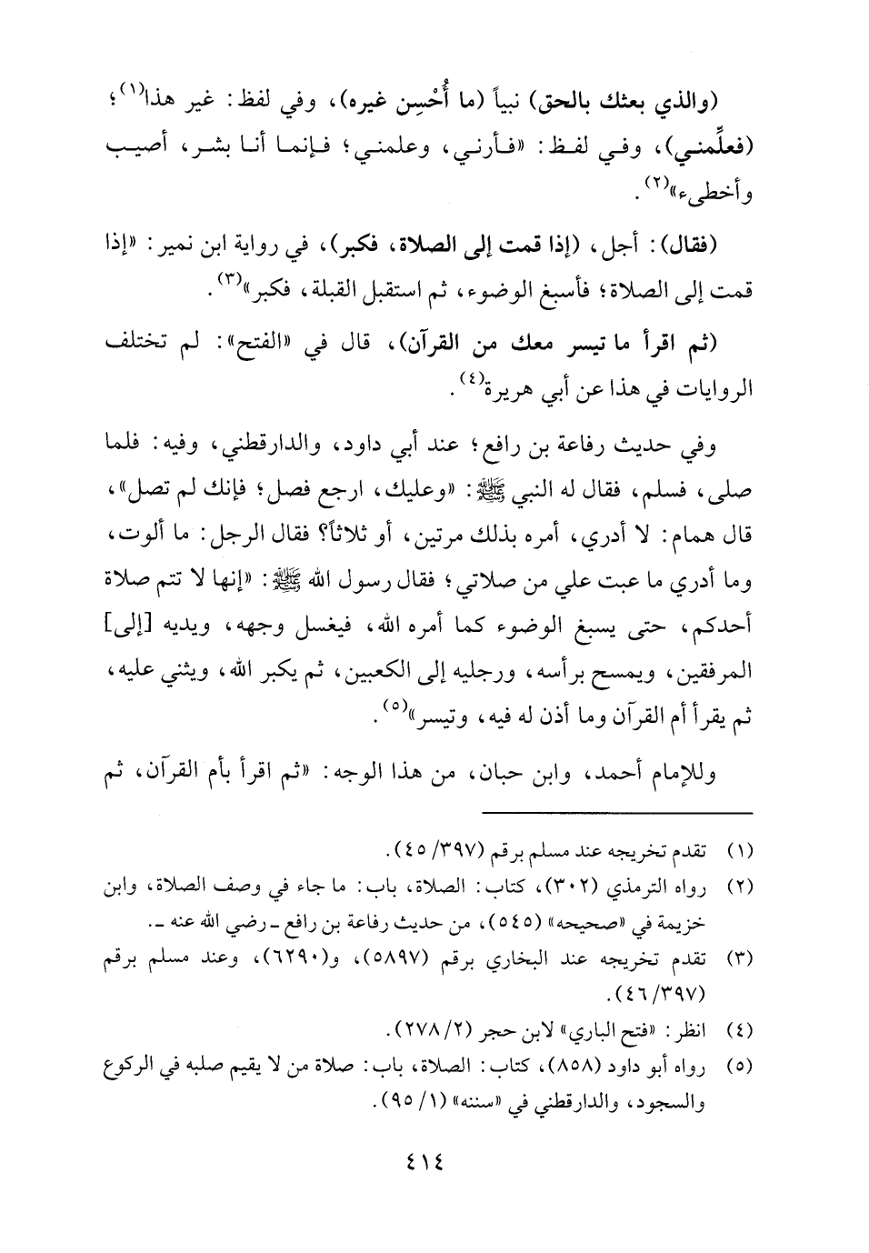 (٥) رواه أبو داود (٨٥٨)، كتاب: الصلاة، باب: صلاة من لا يقيم صلبه في الركوع والسجود، والدارقطني في "سننه" (١/ ٩٥).