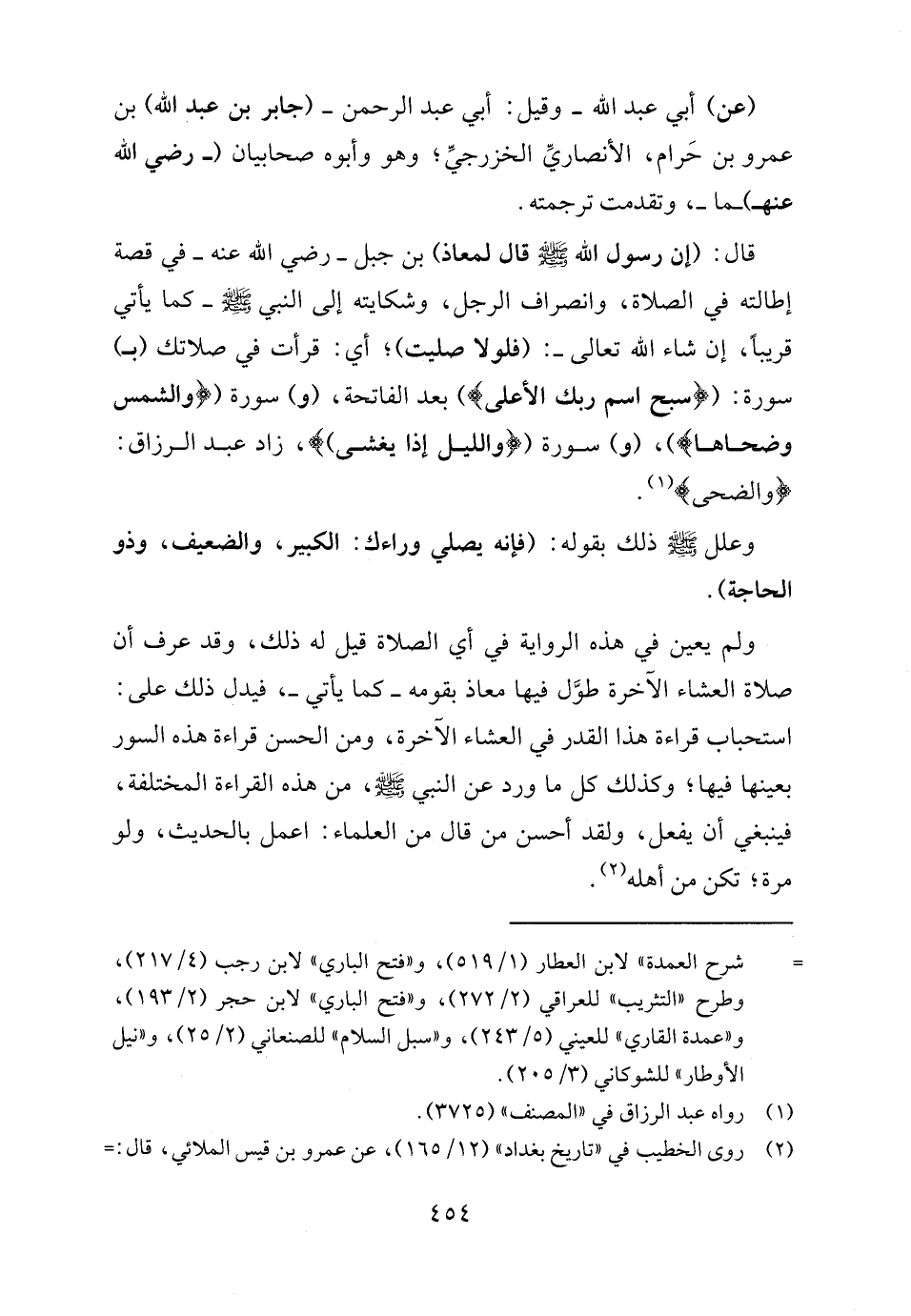 قال: (إن رسول اللَّه -صلى اللَّه عليه وسلم- قال لمعاذ) بن جبل -رضي اللَّه عنه- في قصة إطالته في الصلاة، وانصراف الرجل، وشكايته إلى النبي -صلى اللَّه عليه وسلم- كما يأتي قريبًا، إن شاء اللَّه تعالى-: (فلولا صليت)؛ أي: قرأت في صلاتك (بـ) سورة: ({سَبِّحِ اسْمَ رَبِّكَ الْأَعْلَى}) بعد الفاتحة، (و) سورة ({وَالشَّمْسِ وَضُحَاهَا})، (و) سورة ({وَاللَّيْلِ إِذَا يَغْشَى})، زاد عبد الرزاق: {وَالضُّحَى} (١).
