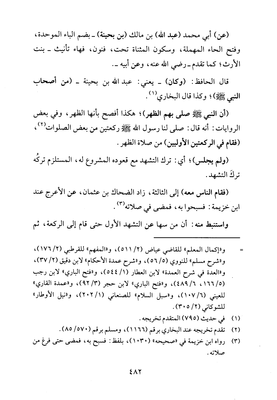 (أن النبي -صلى اللَّه عليه وسلم- صلى بهم الظهر)؛ هكذا أفصح بأنها الظهر، وفي بعض الروايات: أنه قال: صلى لنا رسول اللَّه -صلى اللَّه عليه وسلم- ركعتين من بعض الصلوات (٢)، (فقام في الركعتين الأوليين) من صلاة الظهر.