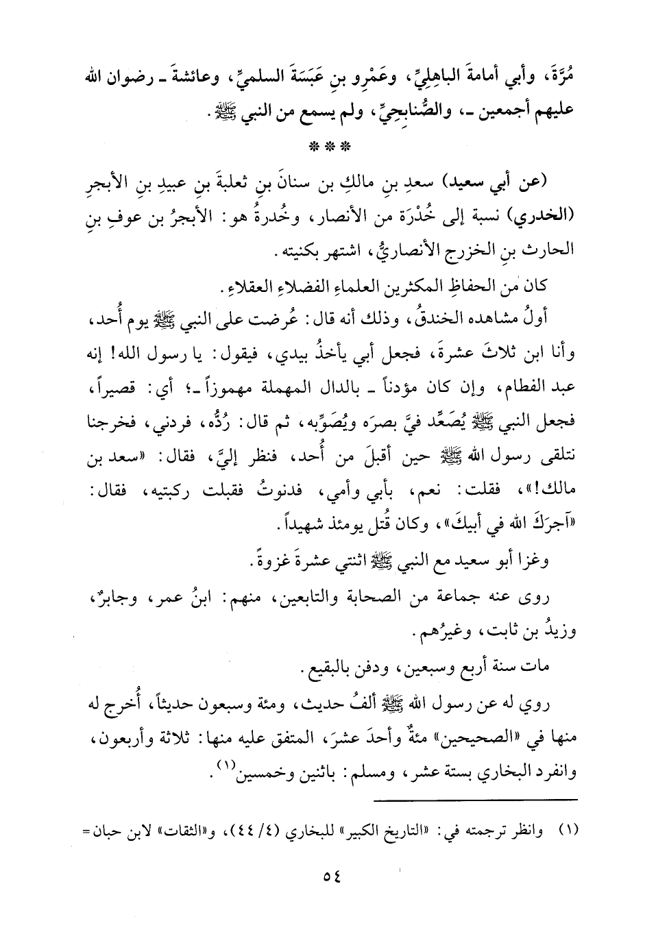 (عن أبي سعيد) سعدِ بنِ مالكِ بن سنانَ بنِ ثعلبةَ بنِ عبيدِ بنِ الأبجرِ (الخدري) نسبة إلى خُدْرَة من الأنصار، وخُدرةُ هو: الأبجرُ بن عوفِ بنِ الحارث بنِ الخزرج الأنصاريُّ، اشتهر بكنيته.