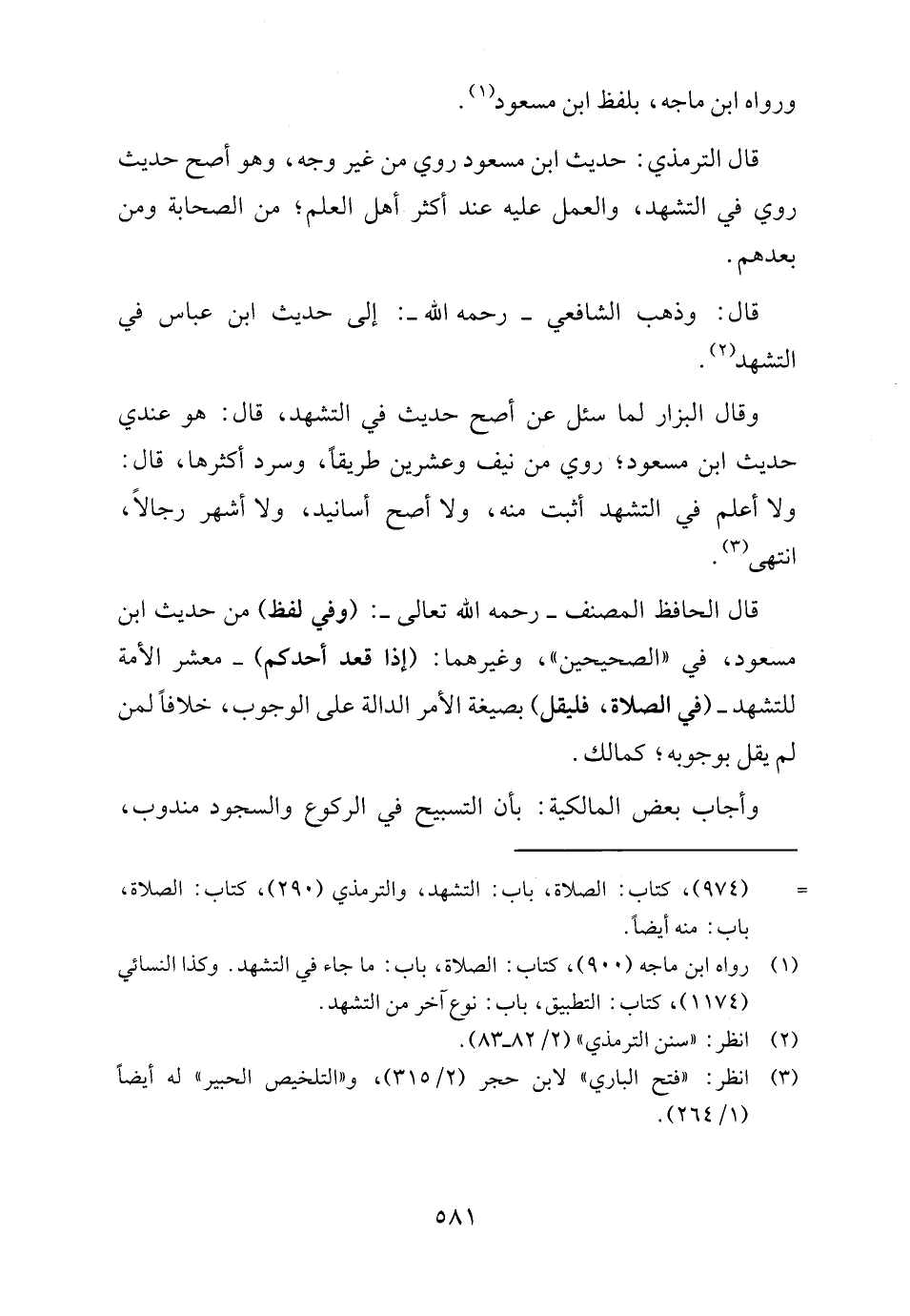 قال الترمذي: حديث ابن مسعود روي من غير وجه، وهو أصح حديث روي في التشهد، والعمل عليه عند أكثر أهل العلم؛ من الصحابة ومن بعدهم.