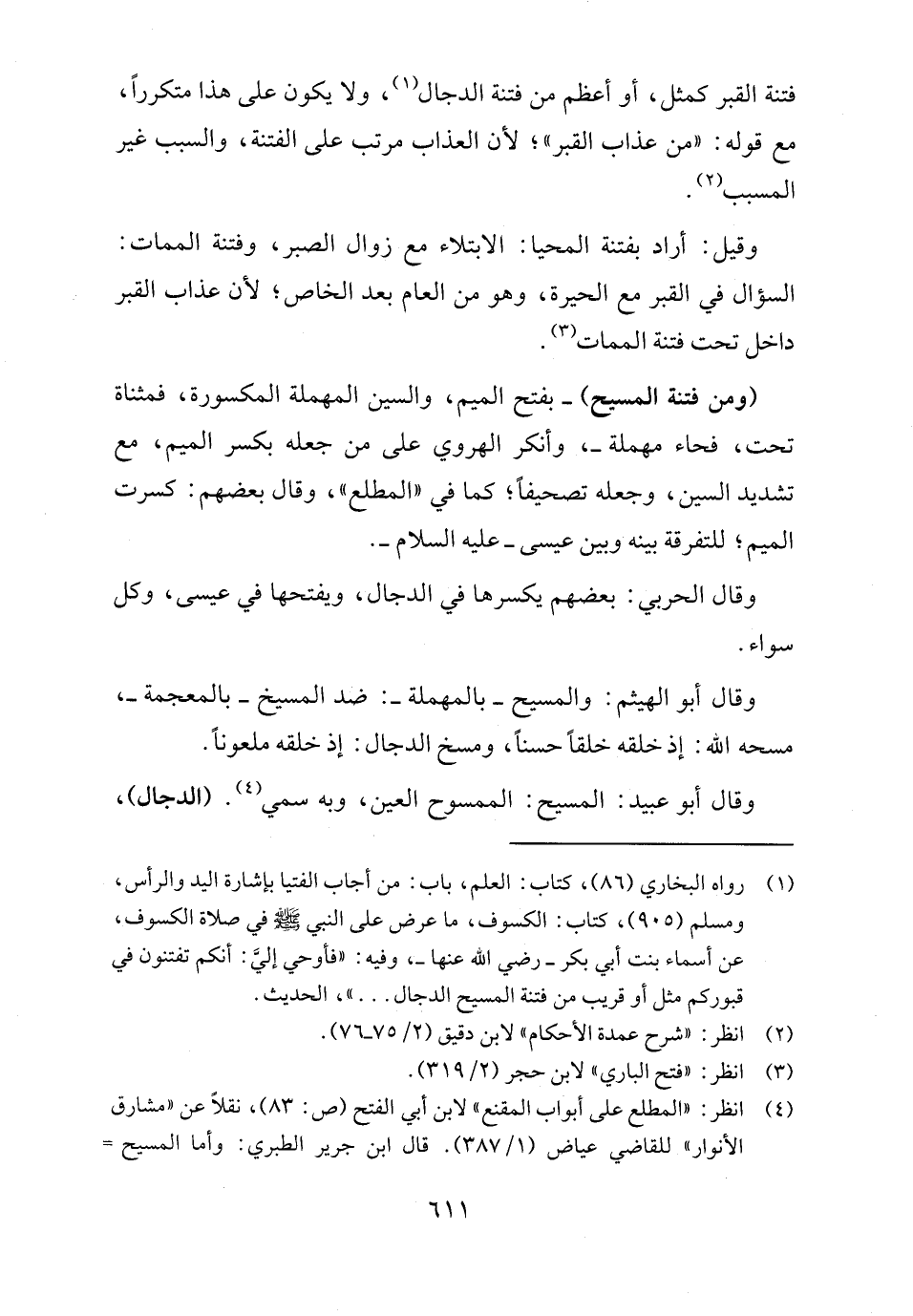 (٤) انظر: "المطلع على أبواب المقنع" لابن أبي الفتح (ص: ٨٣)، نقلًا عن "مشارق الأنوار" للقاضي عياض (١/ ٣٨٧). قال ابن جرير الطبري: وأما المسيح =